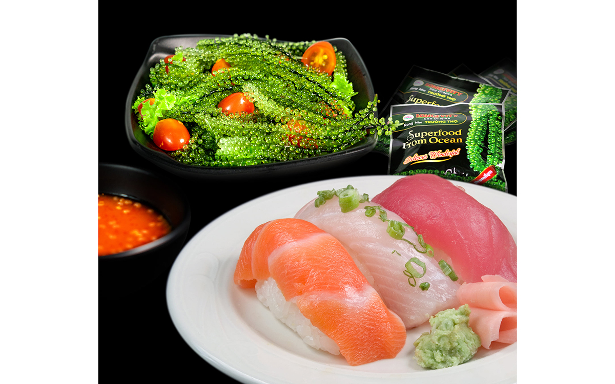 Rong Nho Trường Thọ sản phẩm đảm bảo chất lượng tươi ngon không sử dụng chất bảo quản Đầy đủ chứng chỉ an toàn vệ sinh thực phẩm Được trồng tại vùng biển nuôi trồng sạch Khánh Hòa Việt Nam